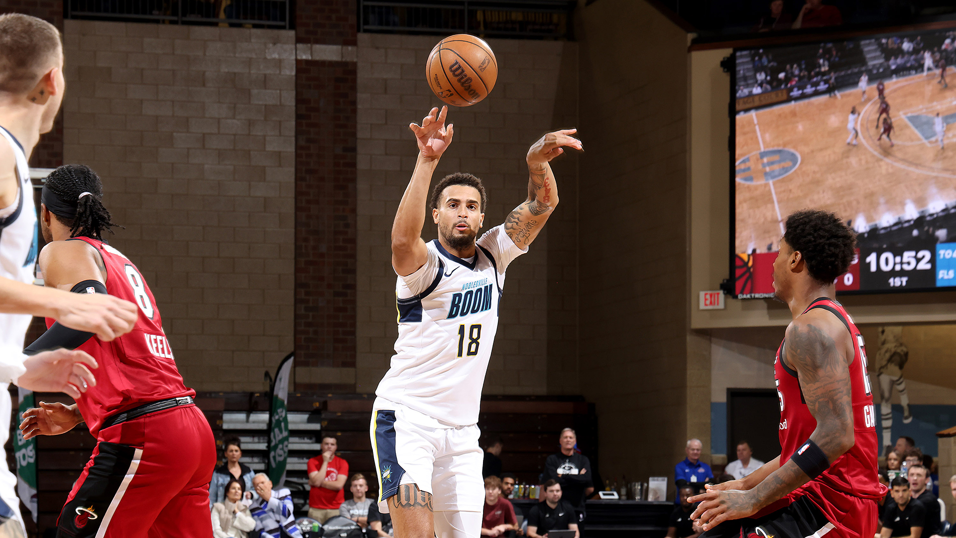 Jalen Slawson set the tone early, knocking down three first-quarter three-pointers and finishing the half with 15 points and 4 rebounds. Despite his hot start, the Boom trailed 36–34 after one. Kyle Guy added 11 points, 4 rebounds and 4 assists in the opening half, highlighted by a rainbow three-pointer at the buzzer to keep the Boom within striking distance. Noblesville went into halftime down 63–59.